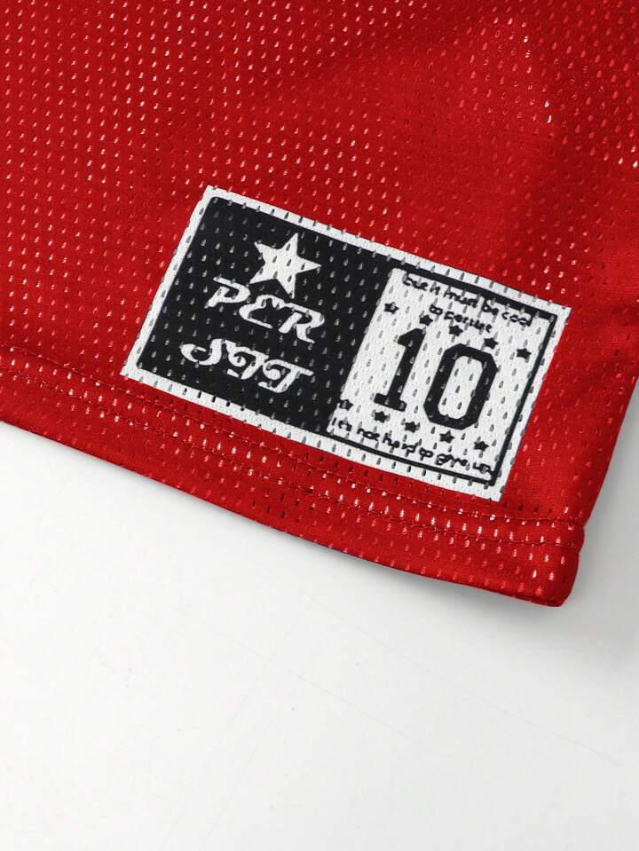 Prep Men's Basketball Jersey Short Sleeve Football Jersey Style T-Shirt, Mesh Splice Sports Tee, Summer