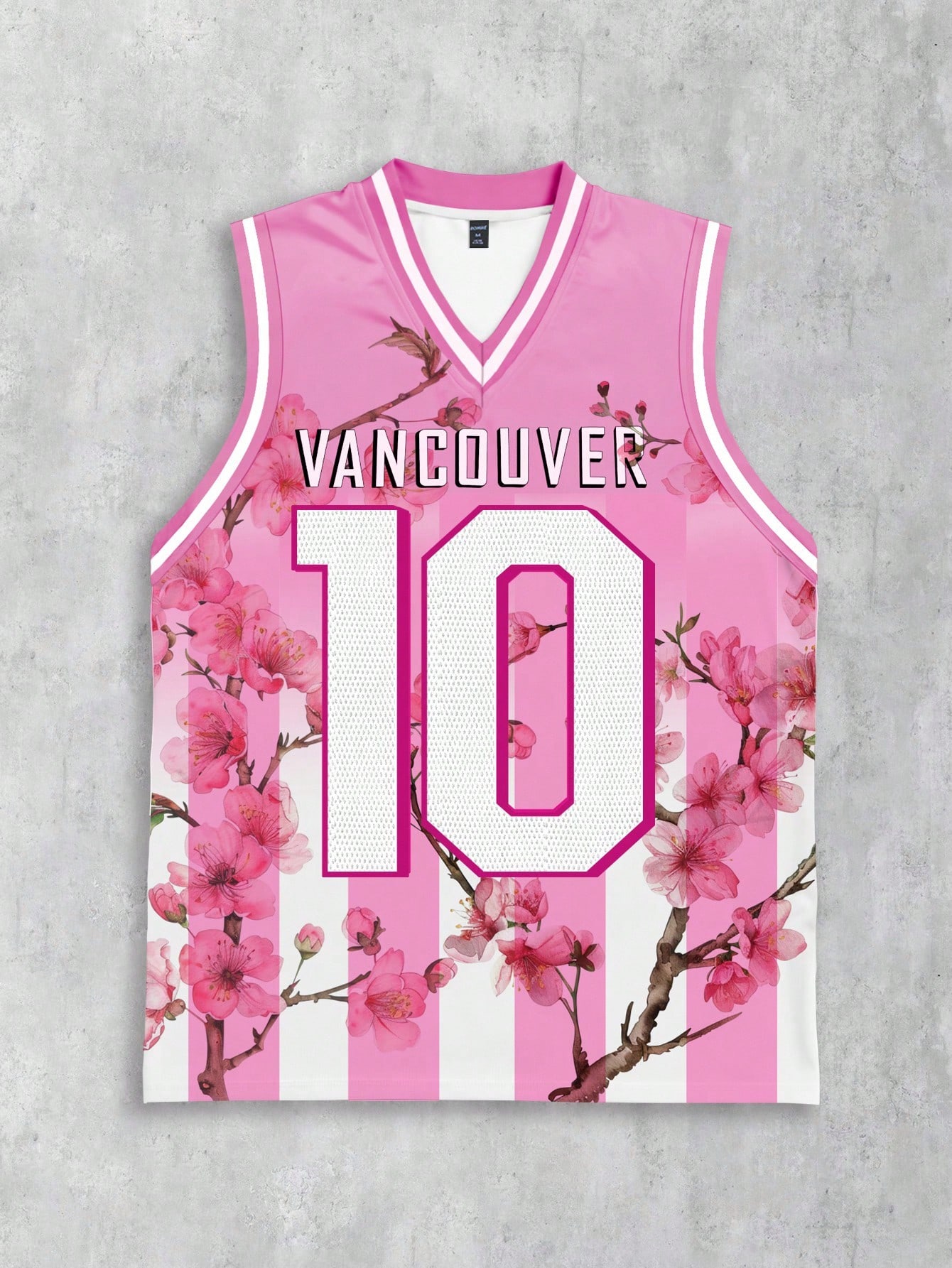 Prep Men's Basketball Streetwear Print Tank Top, Suitable For Casual Wear In Spring And Summer