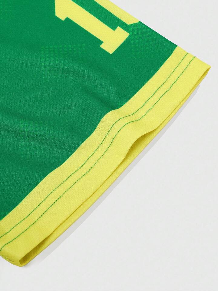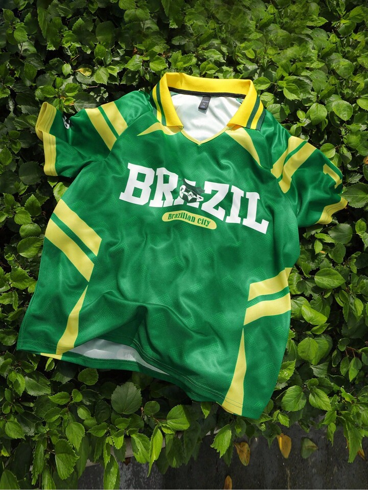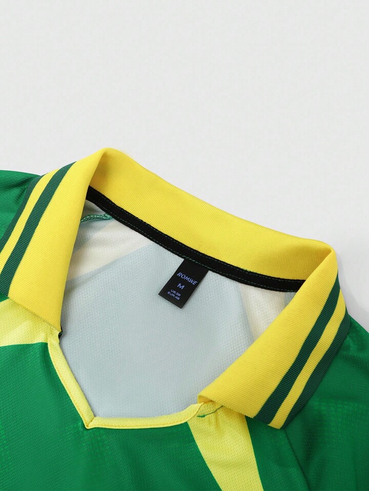 Prep Men's Brazil Football Sports Polo Shirt, Contrast Color Block Short Sleeve T-Shirt Jersey