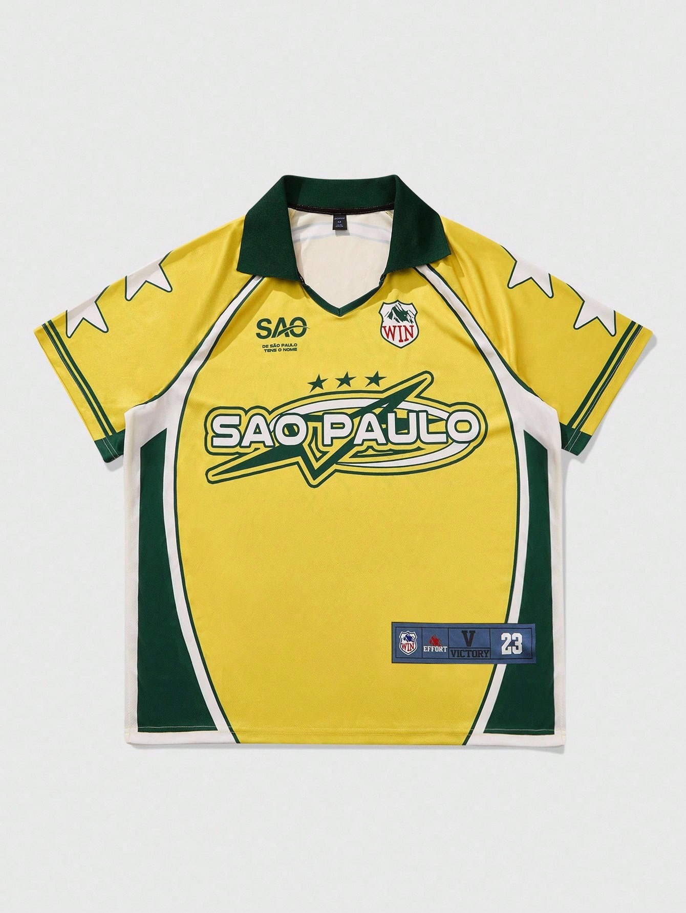 Prep Men's Brazil Football Sports Polo Shirt, Soccer Short Sleeve T-Shirt , Colorblock Design, V-Neck, Green