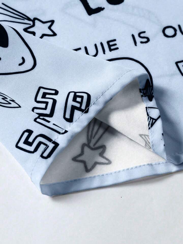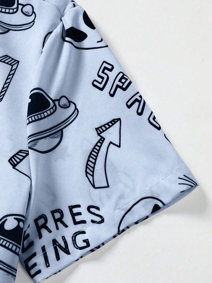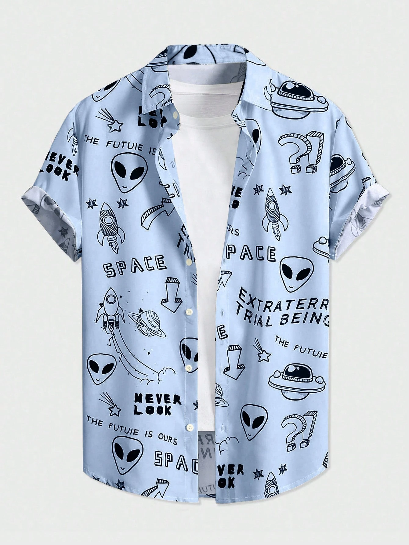 Prep Men's Casual Alien Print Button Front Short Sleeve Shirt, Summer
