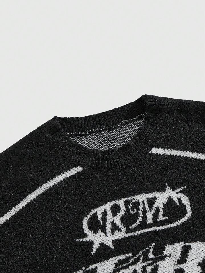 Prep Men's Casual Letter Pattern Crew Neck Long Sleeve Knit Sweater, Autumn/Winter