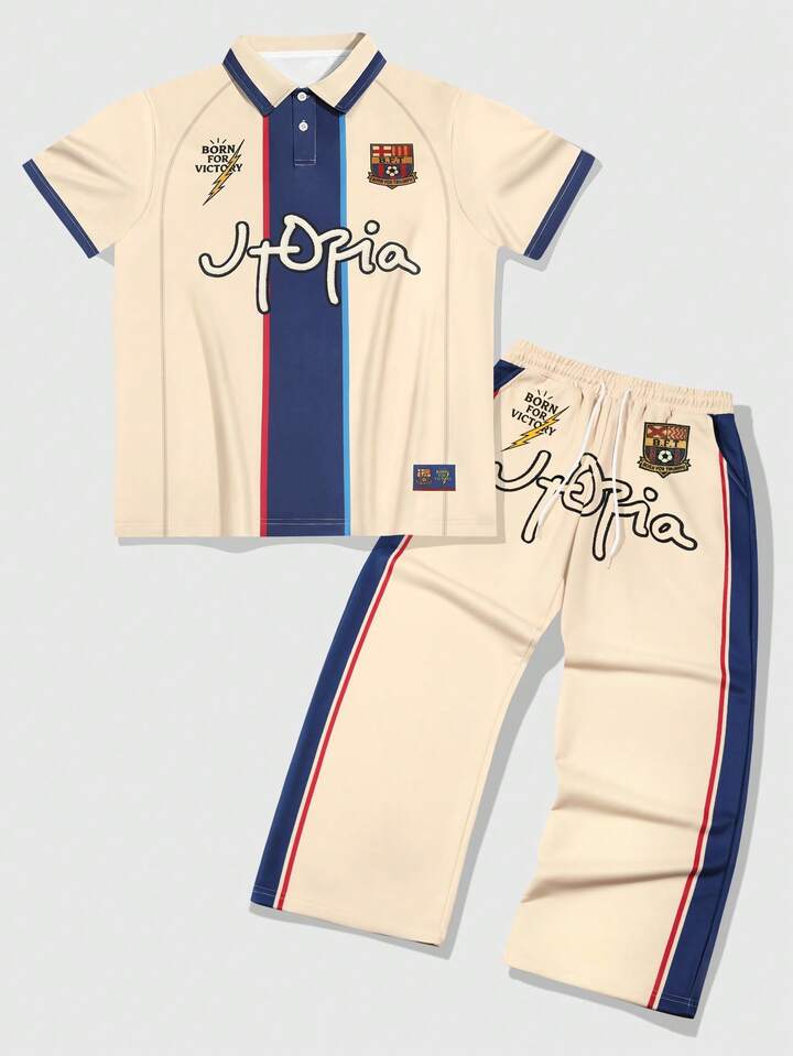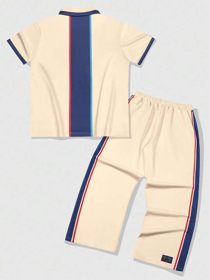 Prep Men's Casual Printed Button-Up T-Shirt Set