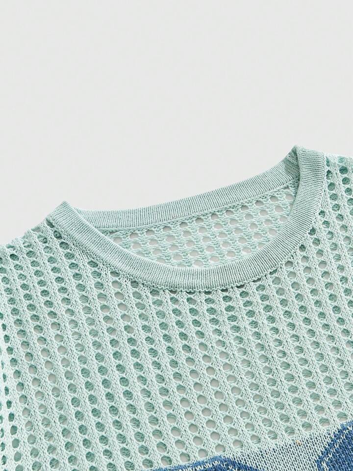 Prep Men's Casual Street Style Graphic Stars Jacquard Hollow Out Pullover Top