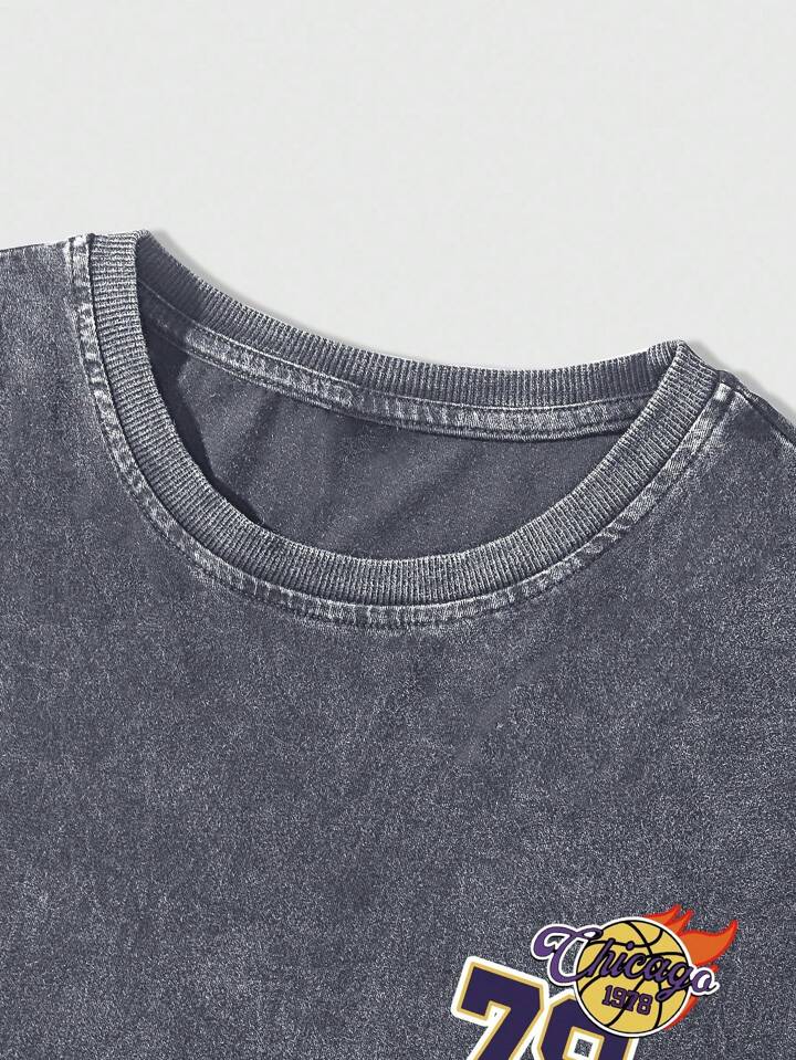 Prep Men's Casual Washed Basketball Print T-Shirt, Summer
