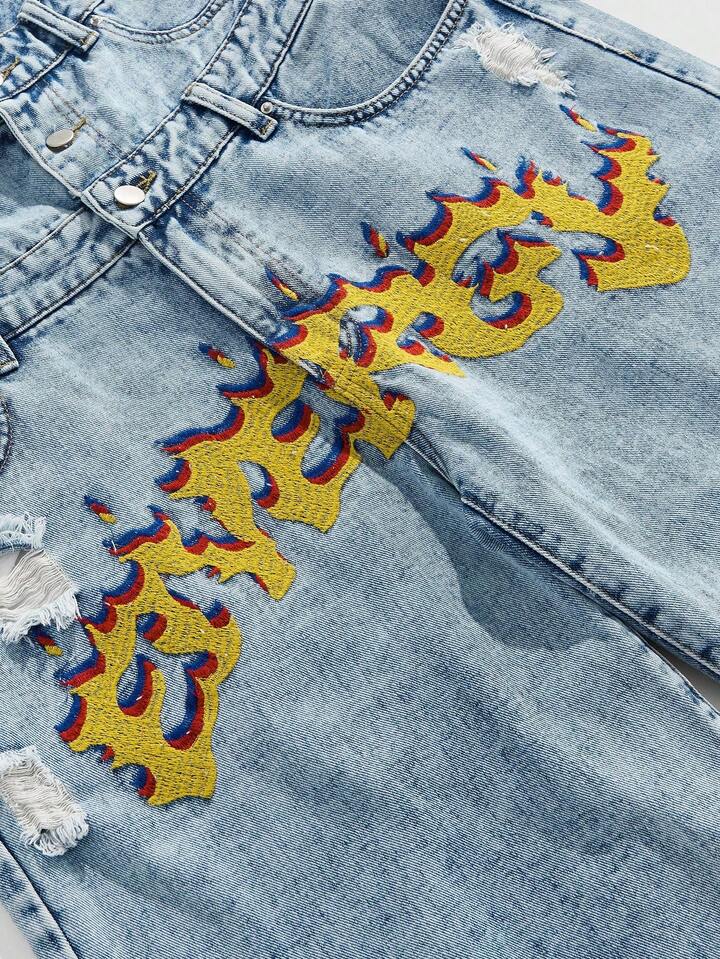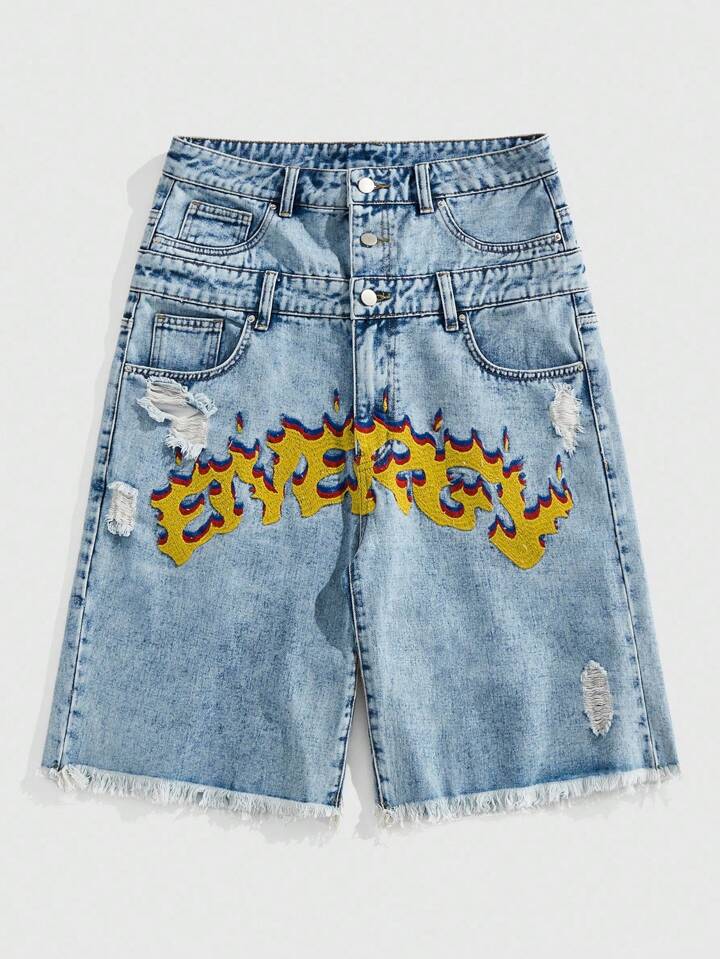 Prep Men's Double-Layer Waistband Embroidered Denim Shorts