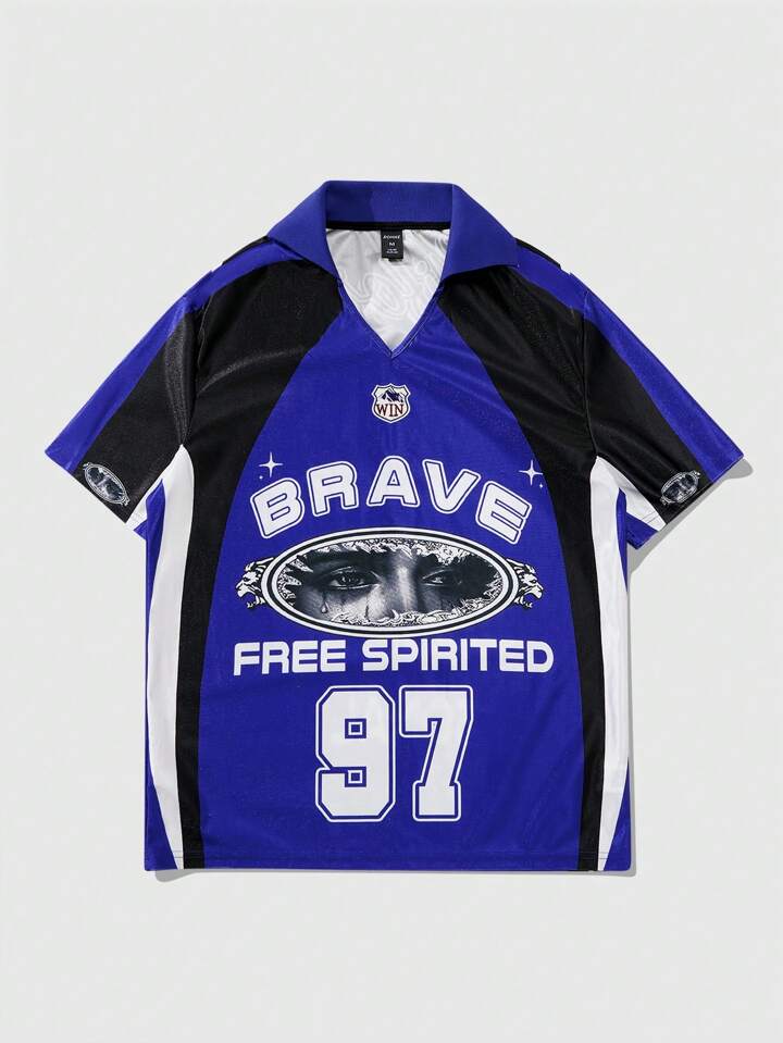 Prep Men's Jersey Colorblock Letter Print Short Sleeve Casual Polo Shirt, Summer