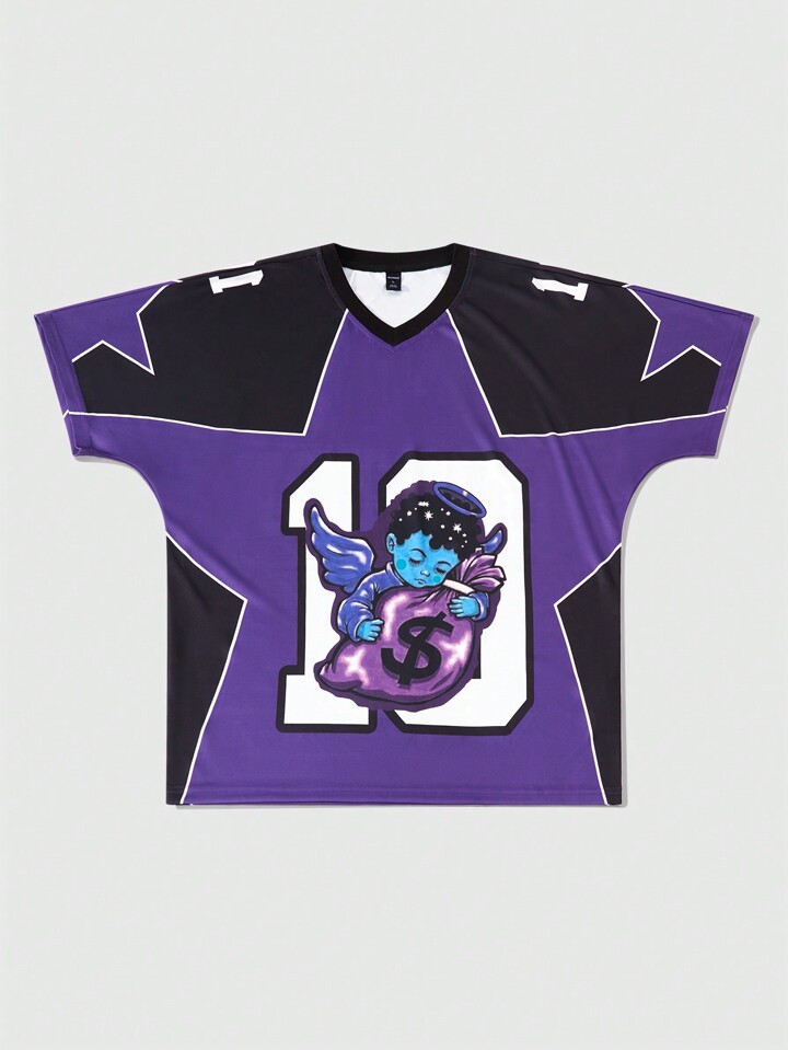 Prep Men's Jersey Football Print Crew Neck Casual Football Jersey Style T-Shirt, Everyday Wear