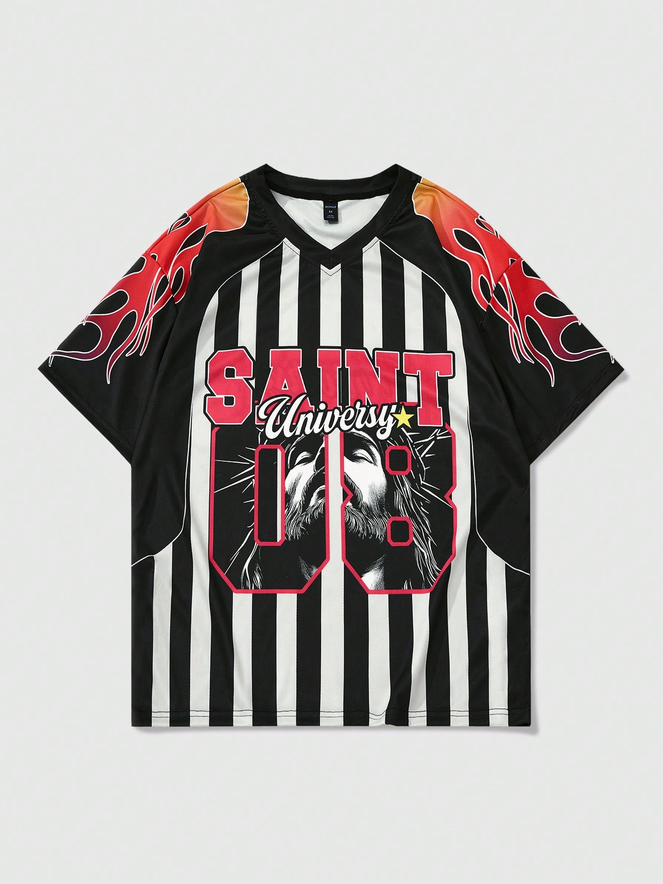 Prep Men's Jersey Slogan Print Short Sleeve T-Shirt, Suitable For Everyday Wear, Spring/Summer