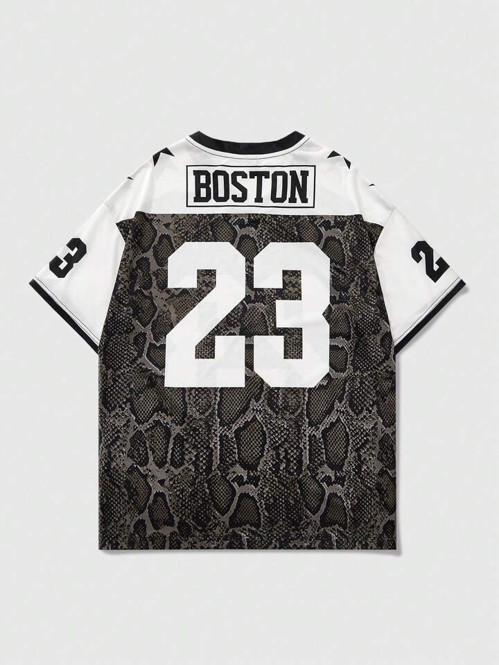 Prep Men's Jersey Snake Pattern Slogan Printed Short Sleeve T-Shirt, Suitable For Everyday Wear In Spring/Summer, Halloween