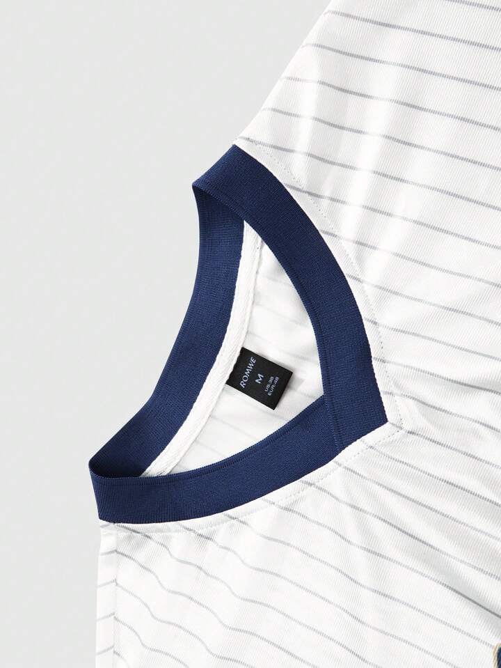 Prep Men's Jersey Solid Color Patchwork V-Neck Short Sleeve Numeric Print Casual T-Shirt