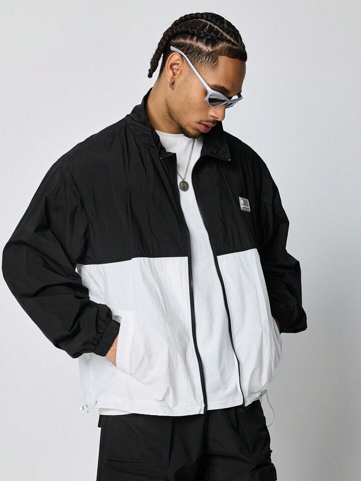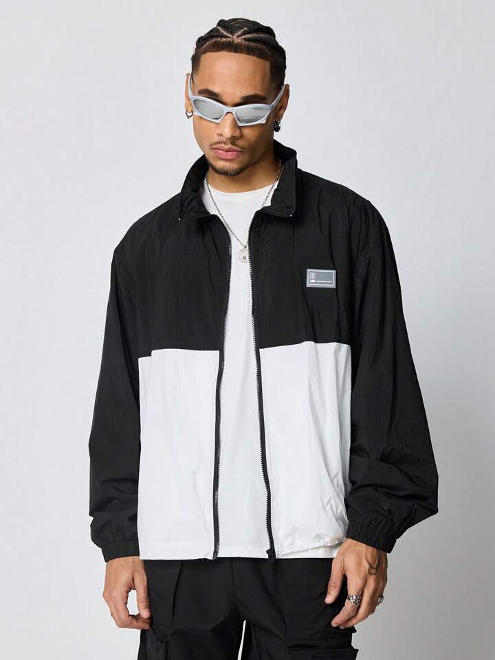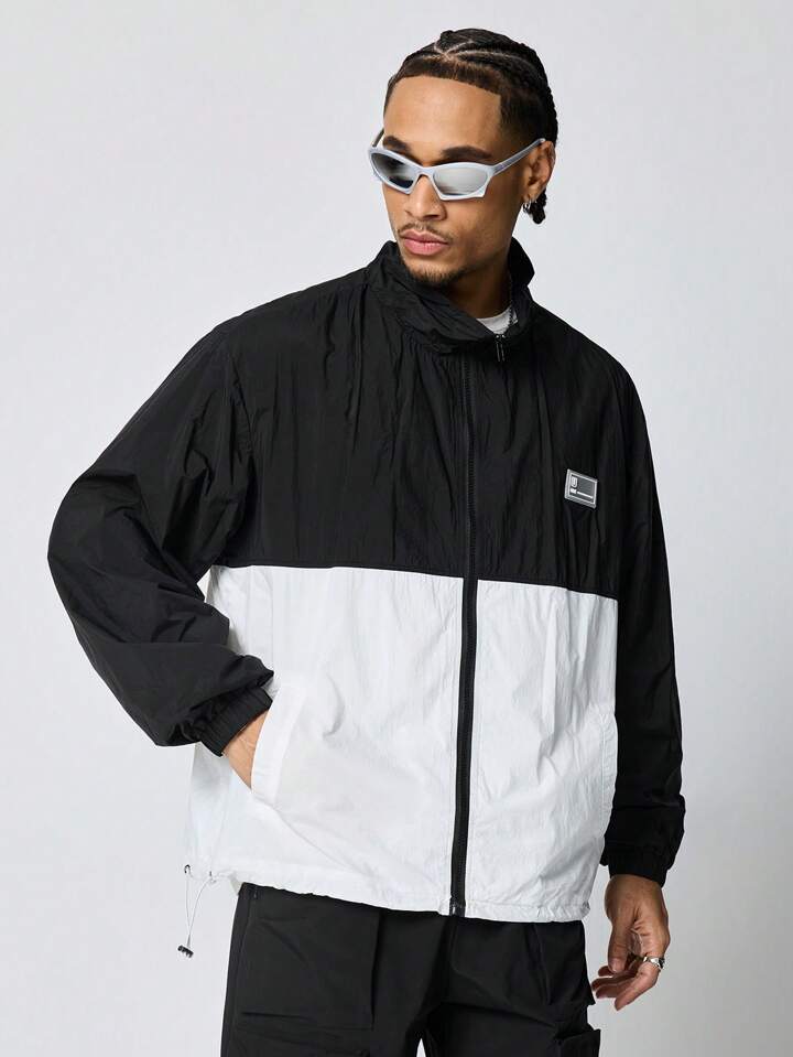 Prep Men's Letter Graphic Contrast Color Long Sleeve Casual Jacket