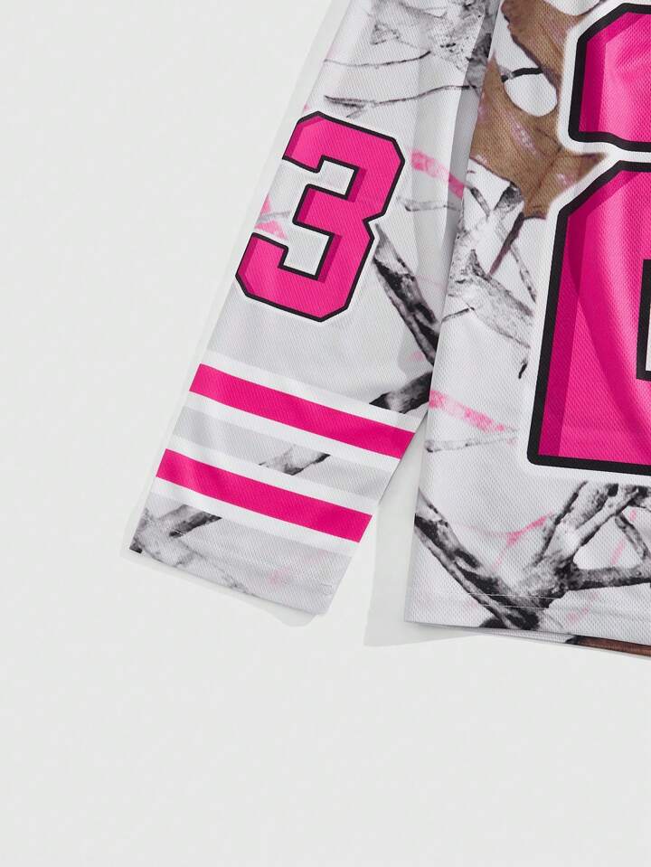 Prep Men's Letter Print Casual Long Sleeve V-Neck Football Jersey Style T-Shirt, Loose Fit