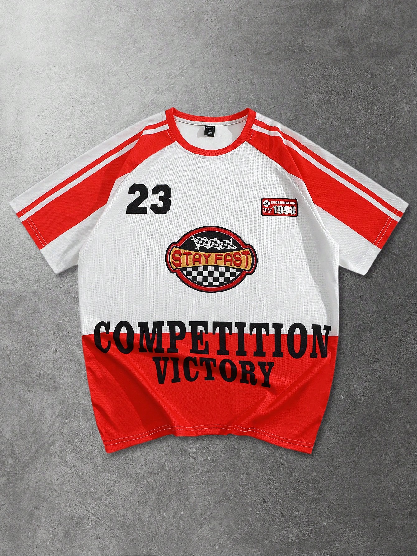 Prep Men's Letter Print Casual Loose Fit Short Sleeve T-Shirt