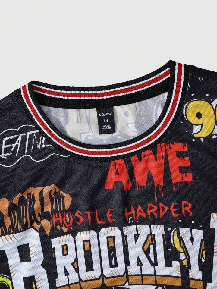 Prep Men's Letter Print Striped Crew Neck Casual Tank Top