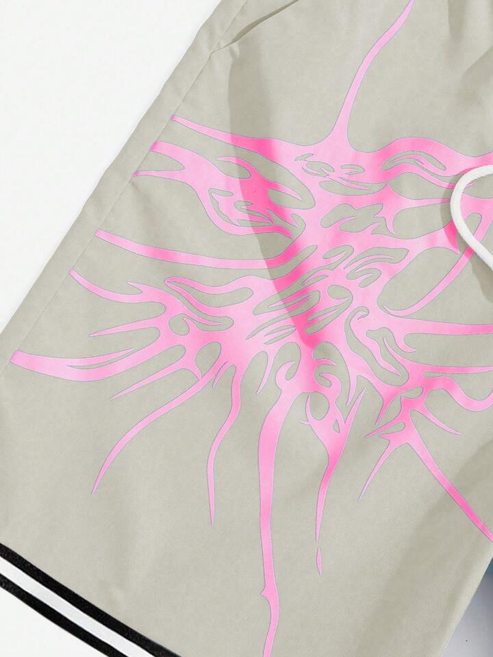 Prep Men's Letter Printed Striped Hem Drawstring Waist Shorts