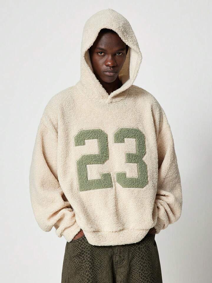 Prep Men's Long Sleeve Number Graphic Detail Fluffy Casual Hoodie