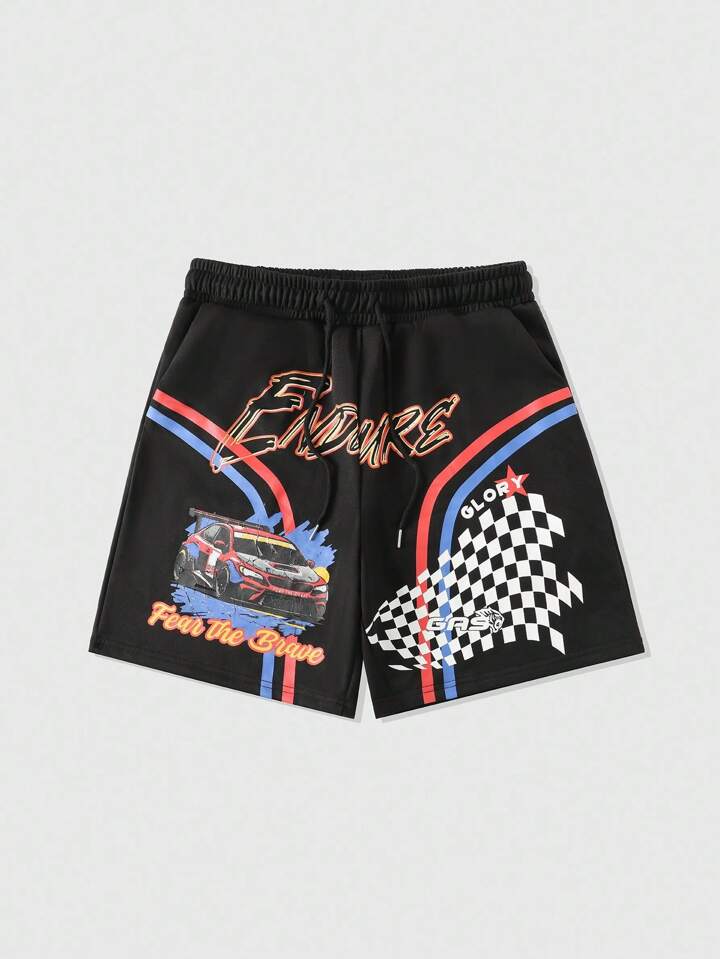 Prep Men's Loose Fit Racing Car Print Drawstring Waist Pocket Shorts