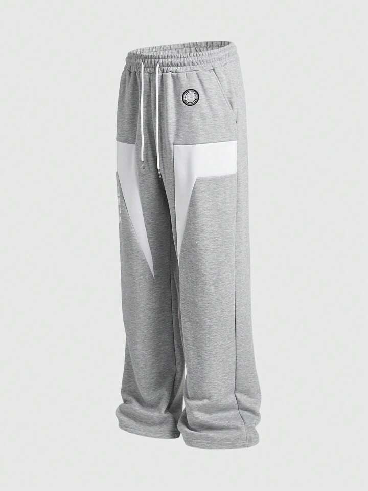 Prep Men's Loose Tape-Embellished Streetwear Sweatpants