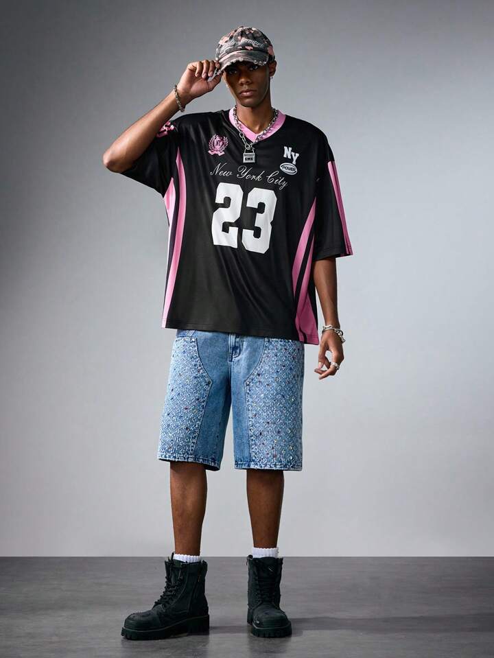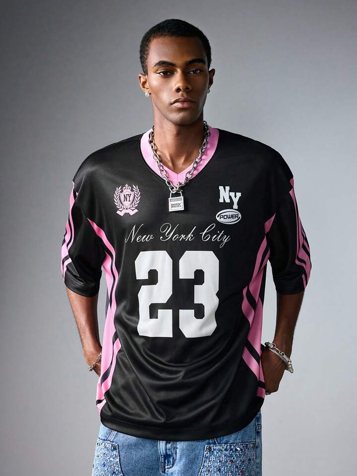 Prep Men's Minimalist Print V-Neck Short Sleeve Jersey Fitted T-Shirt