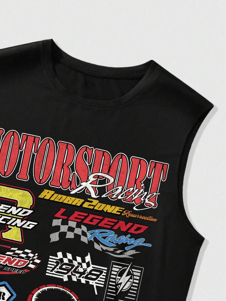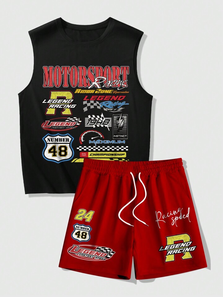Prep Men's Racing Letter Print Tank Top And Shorts Set