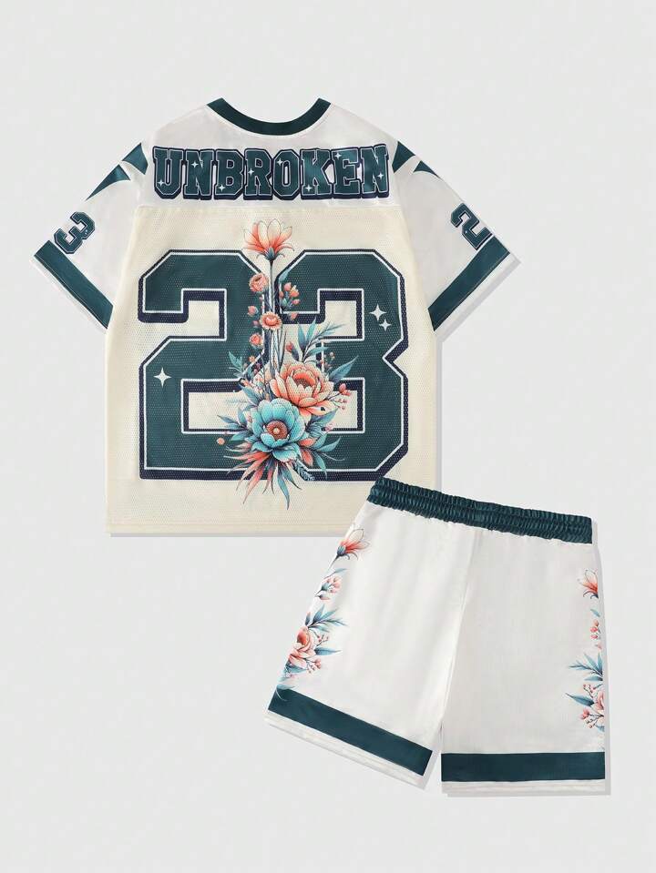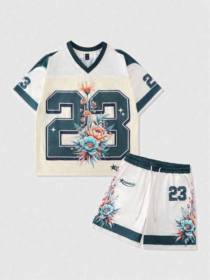 Prep Men's Shiny Fabric Splicing Mesh Gym T-Shirt Jersey Set