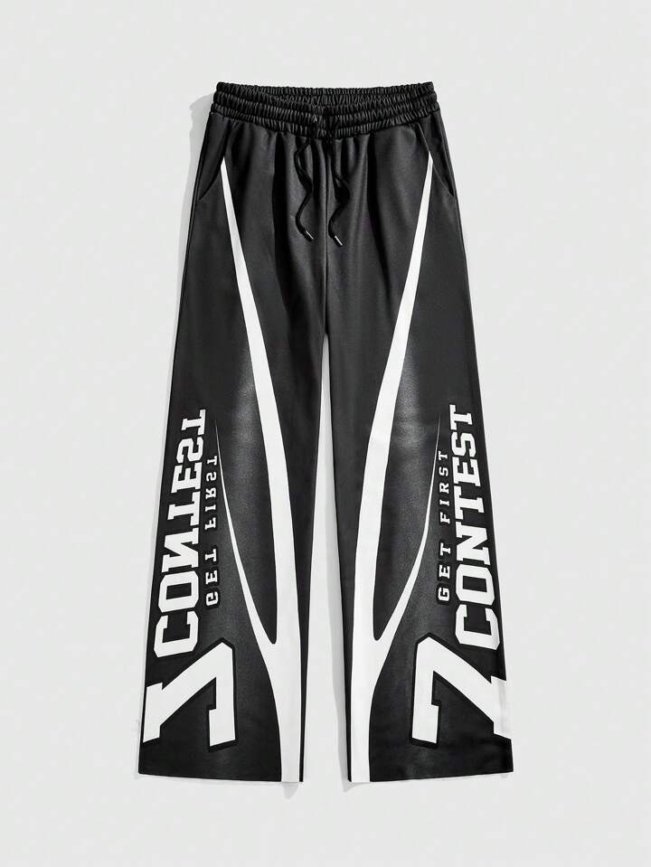 Prep Men's Slogan Printed Casual Sports Streetwear Long Pants, Suitable For Spring/Summer
