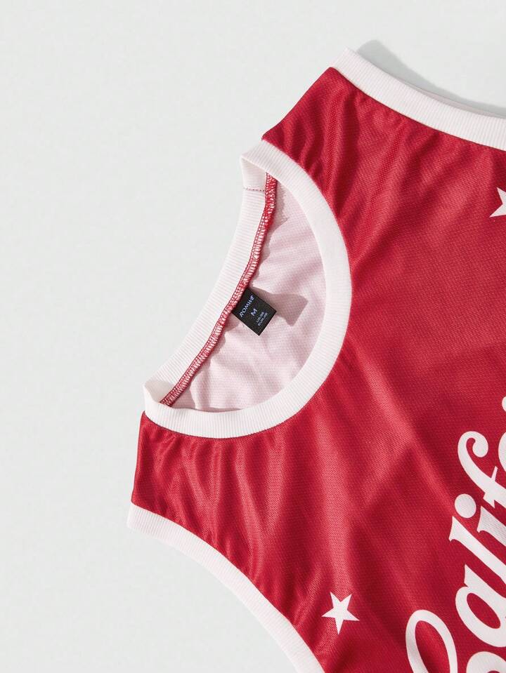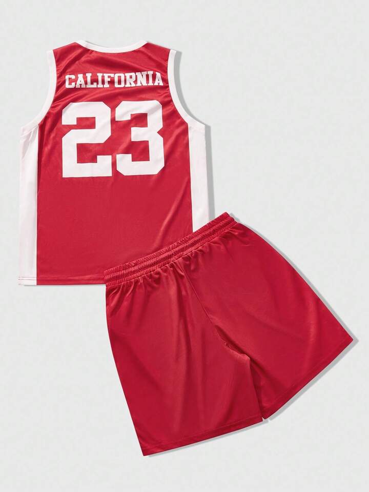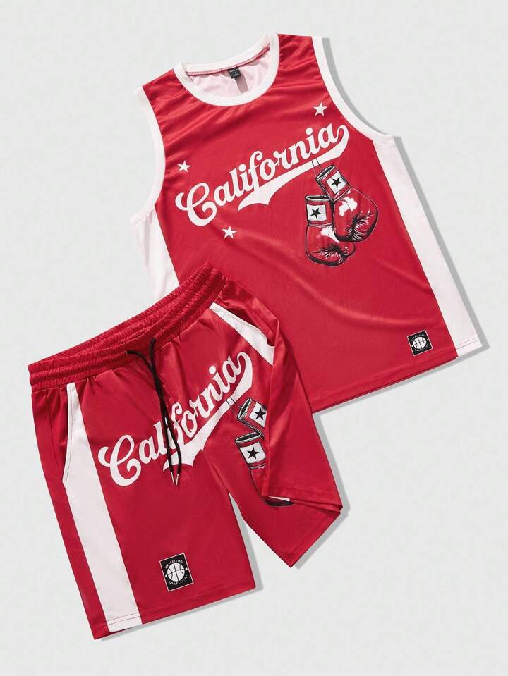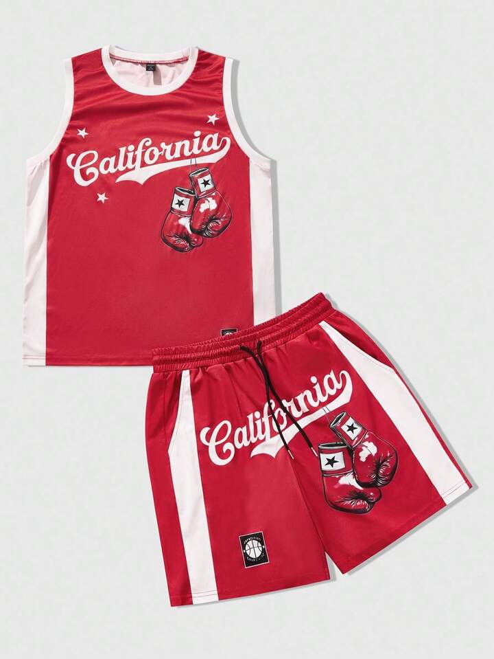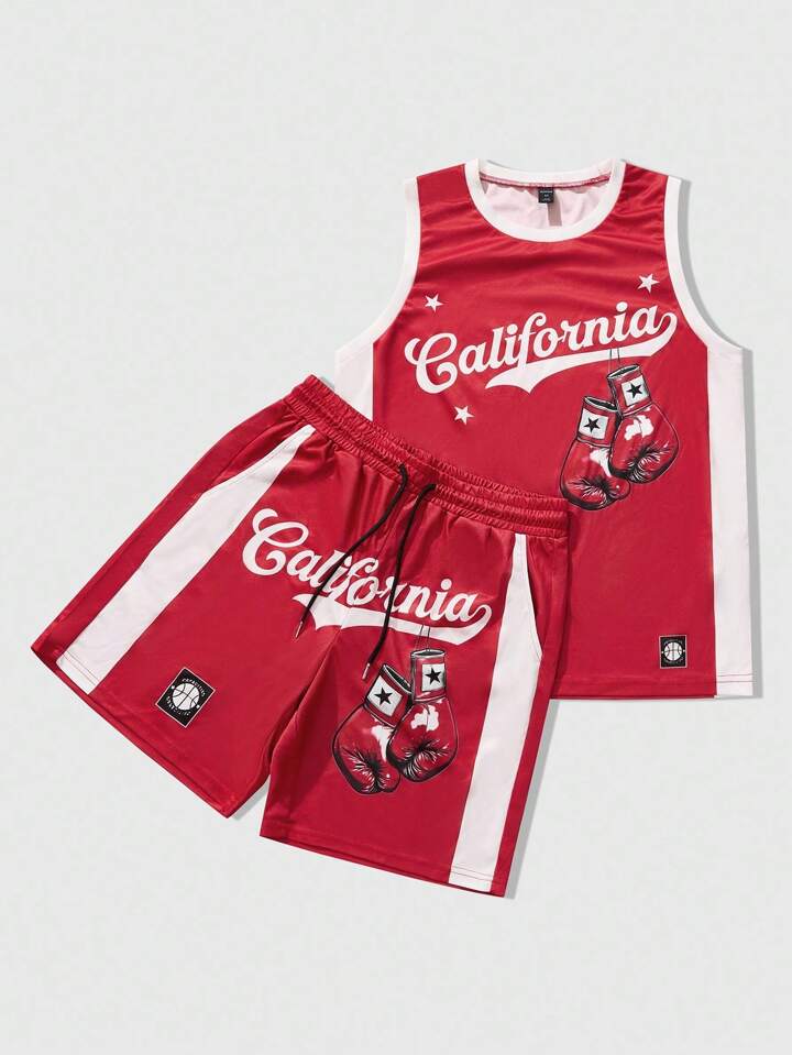 Prep Men's Street Style American Casual Graphic Print Tank Top And Fighting Gloves Basketball Jersey Set