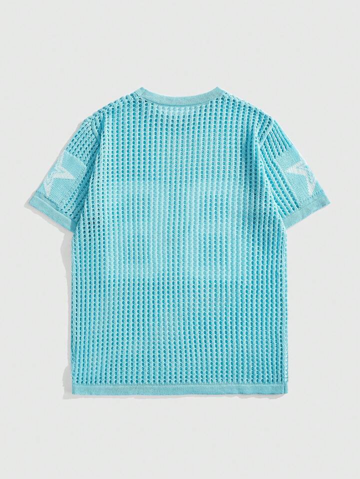 Prep Men's Street-Style Jacquard Hollow Pullover Top, Minimalist Fashion, Football Style, Casual Daily Wear