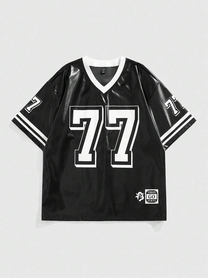 Prep Men's Summer Digital Letter Print V-Neck Short Sleeve Casual T-Shirt