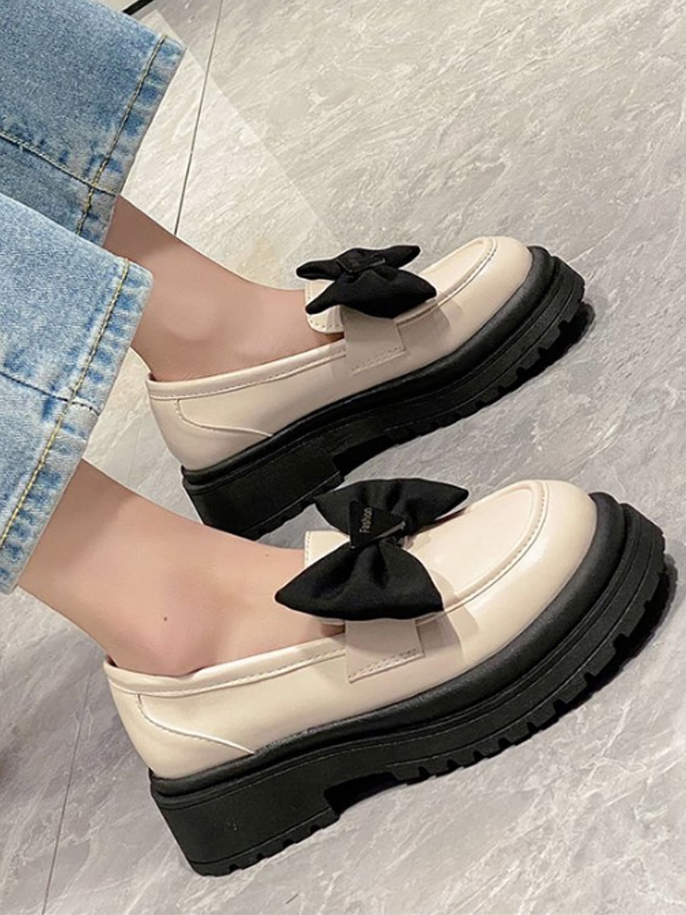 Preppy Loafer Shoes For Women, Bow Decor Platform Wedges Shoes