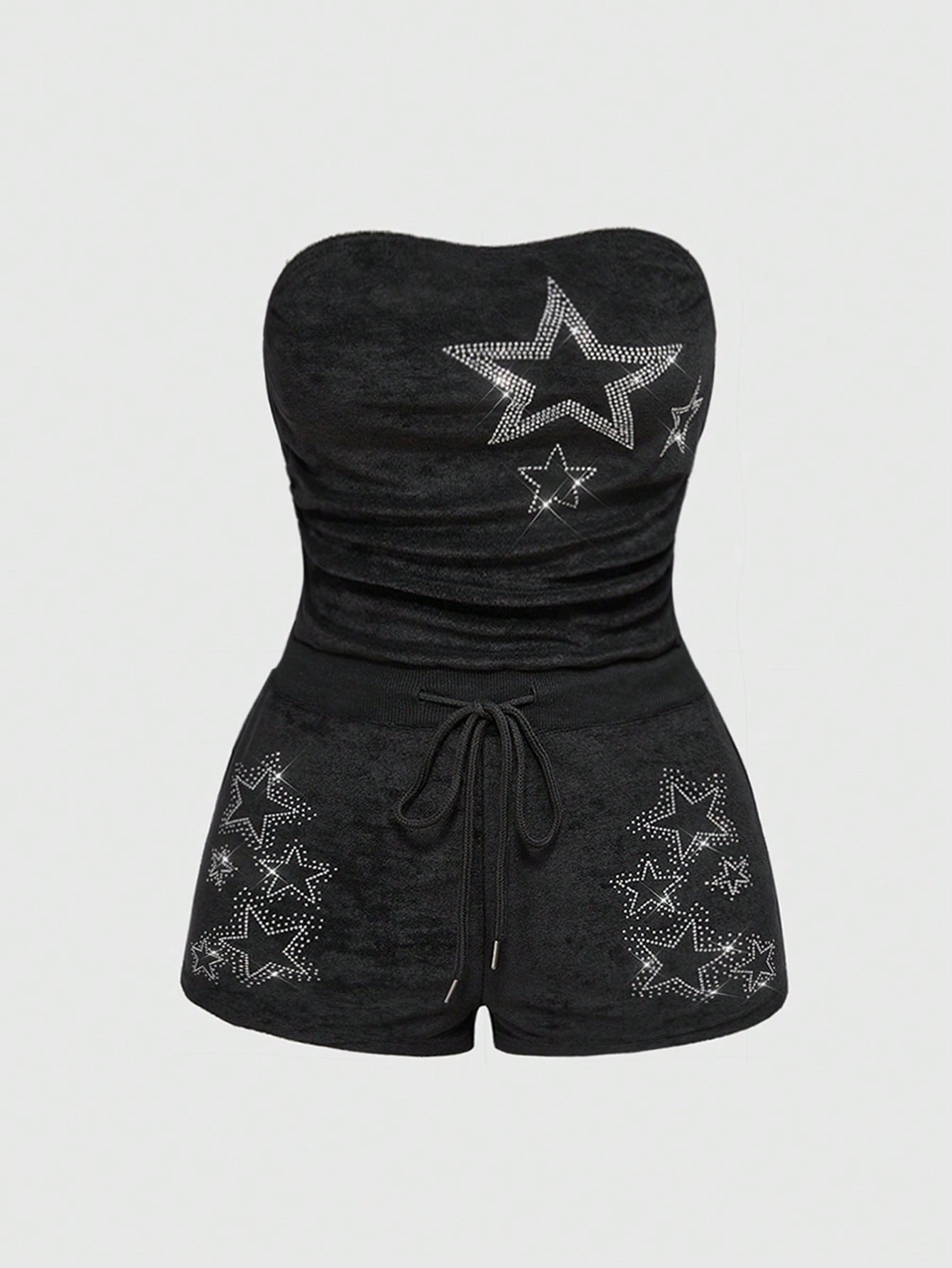 Punk Style Summer Drawstring Waist Shorts With Crystal Star Decoration, Women's Jumpsuit