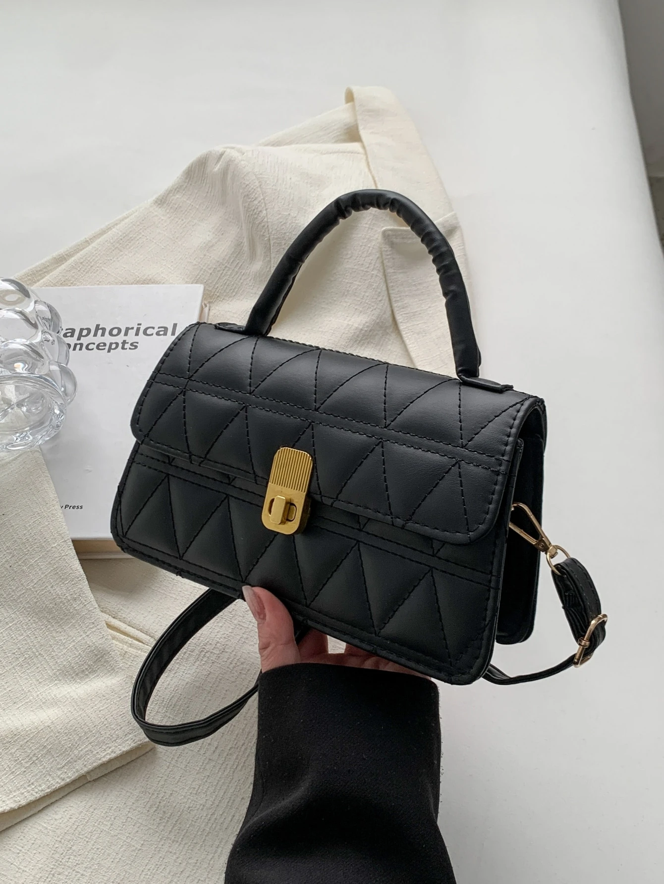 Quilted Square Bag Twist Lock Top Handle Flap Design