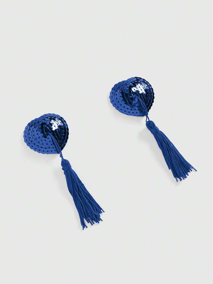 ROMWE Avant 1 Pair Women's Fashionable Glitter Heart Tassel Nipple Covers/Pasties, Suitable For Everyday Wear