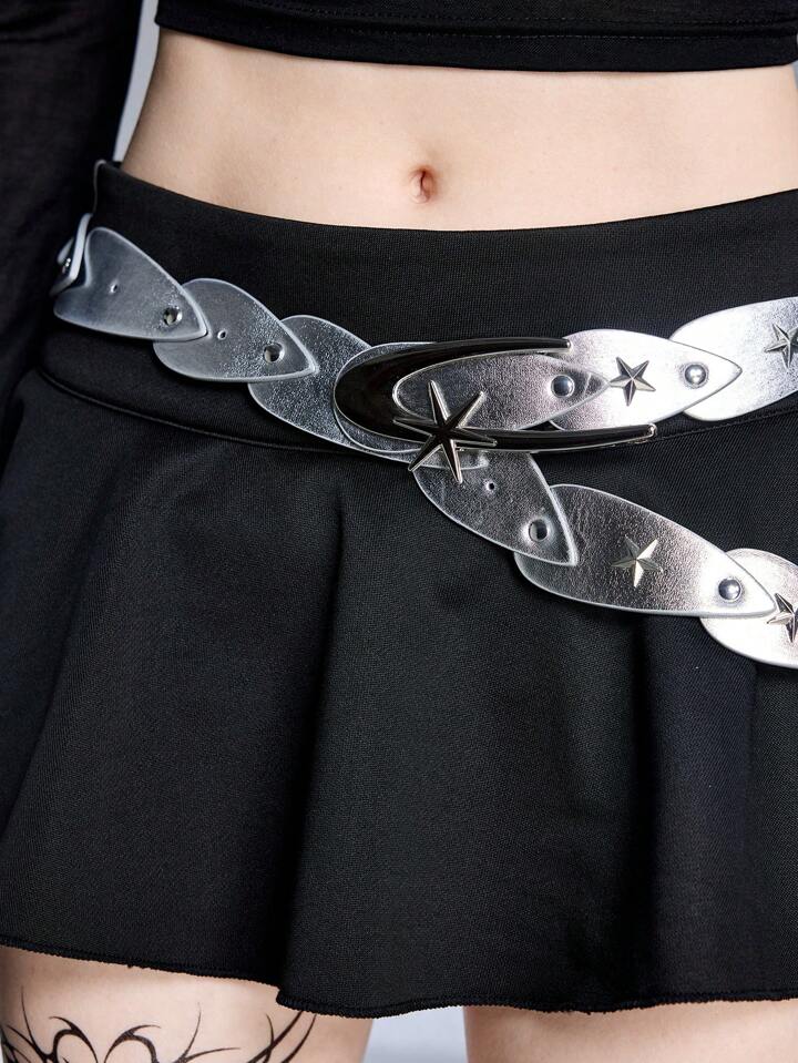 ROMWE Avant 1pc Retro Silver Color Belt, Y2K Fashion Metal Star Design Leather Belt, Unique Waist Accessory