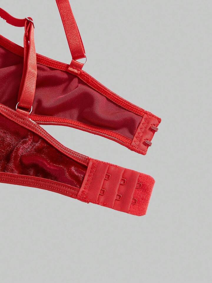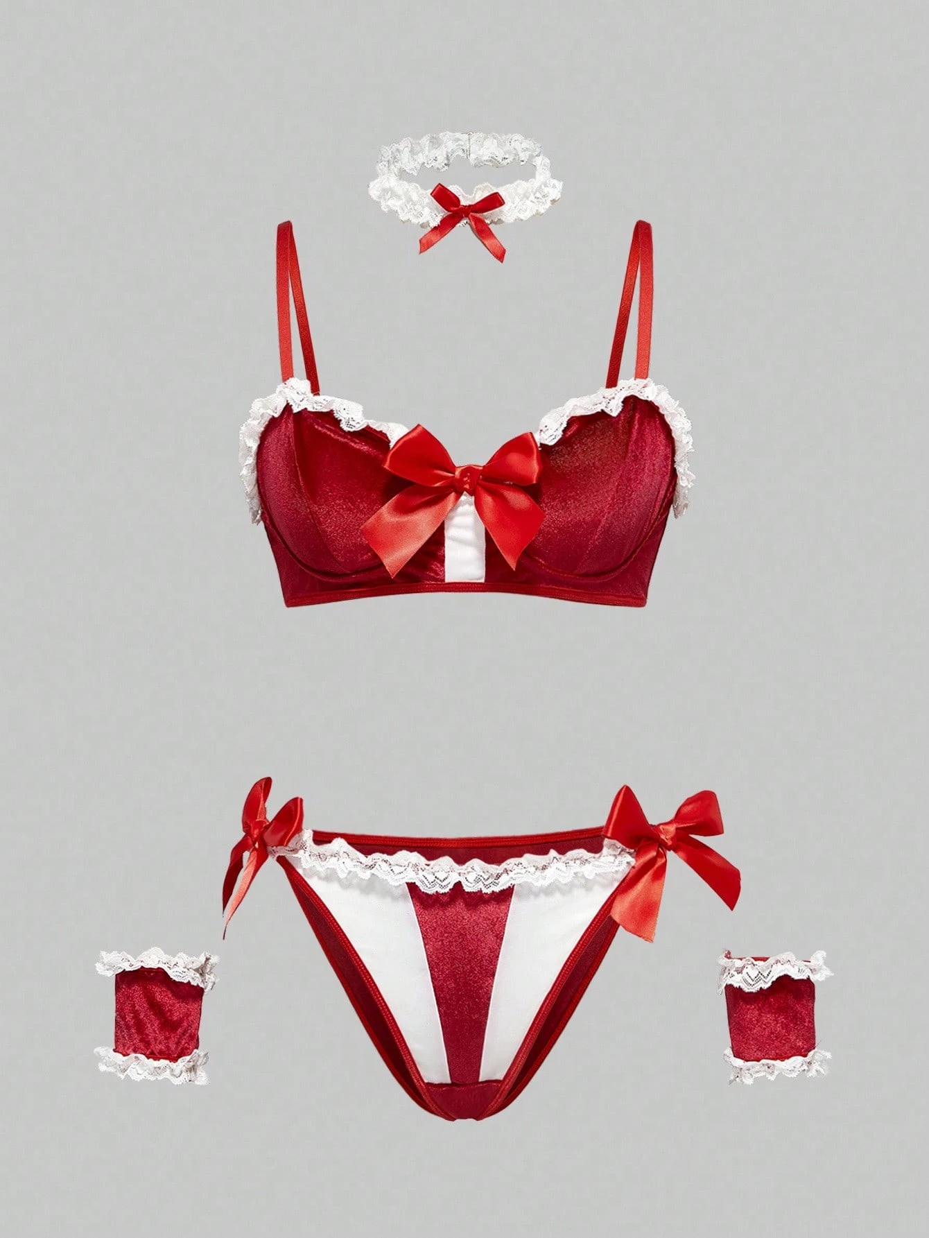 ROMWE Avant 5pcs Women's Christmas Bra, Thong, Collar, Bracelet Intimate Lingerie Set