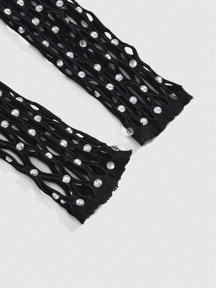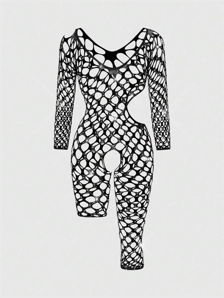 ROMWE Avant Fashionable Avant-Garde Rhinestone Decorated Elastic Stretch Sexy Jumpsuit For Women