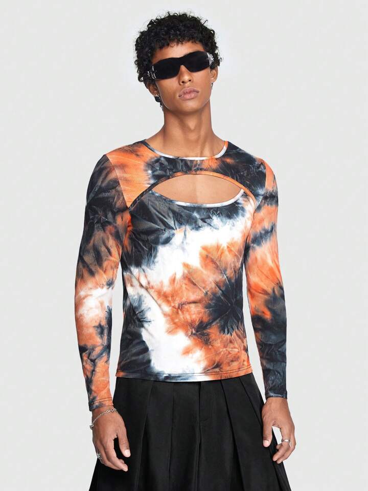 ROMWE Avant Guys Tie Dye Cut Out Tee