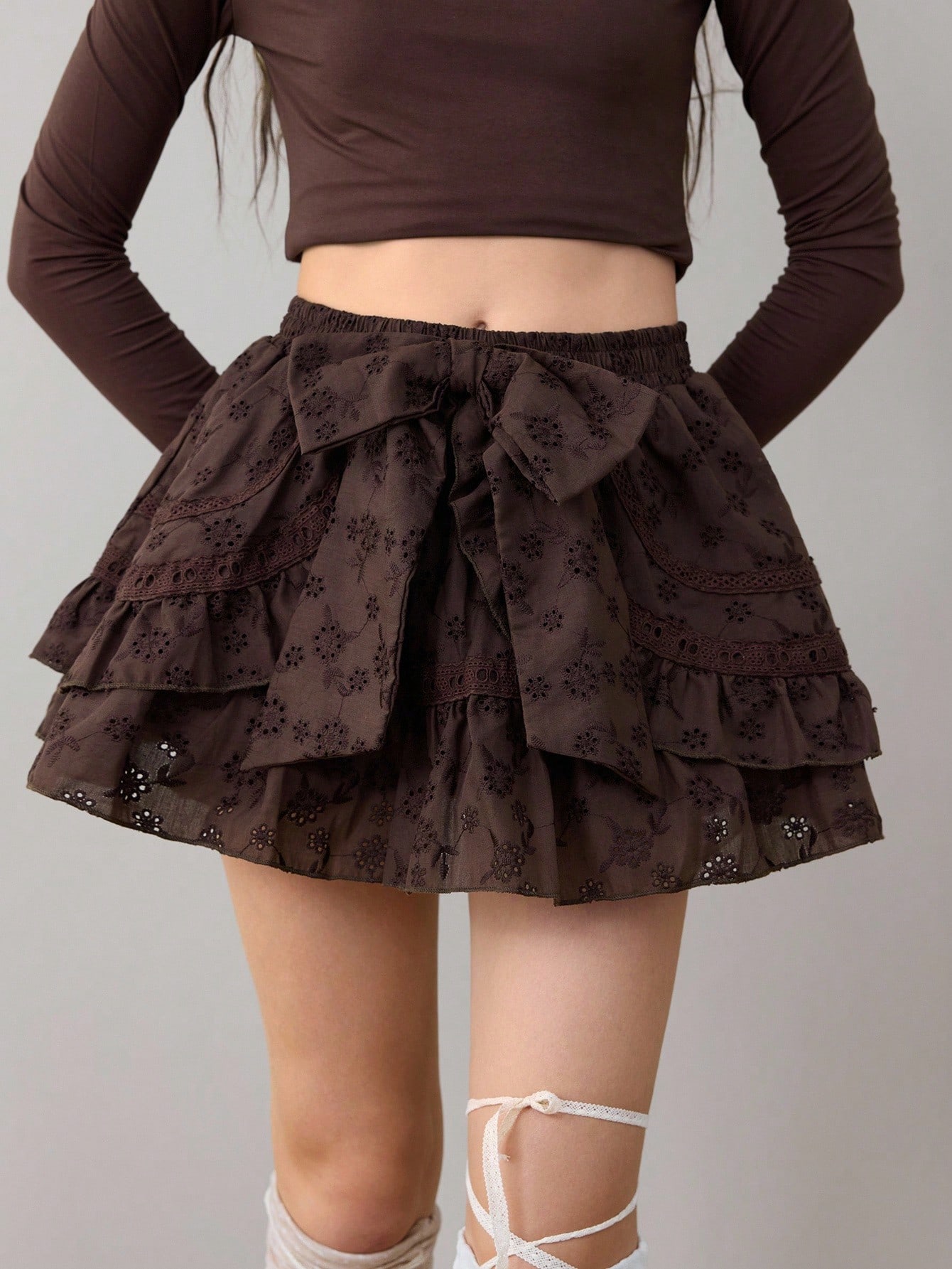 ROMWE Avant Hime Gyaru Cute Mori Style Bow Decor Skirt Pants For Women