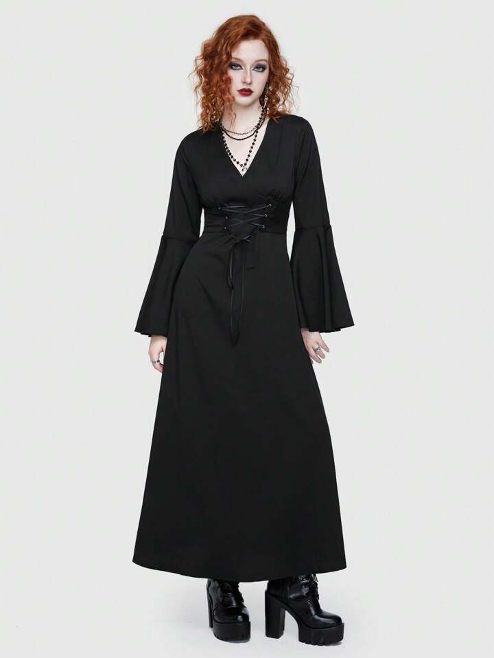 ROMWE Avant Lace Up Front Flounce Sleeve Costume Dress