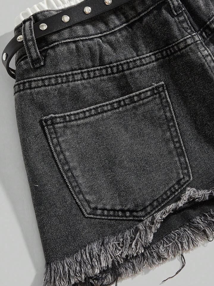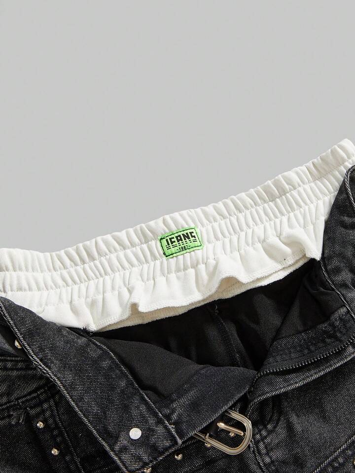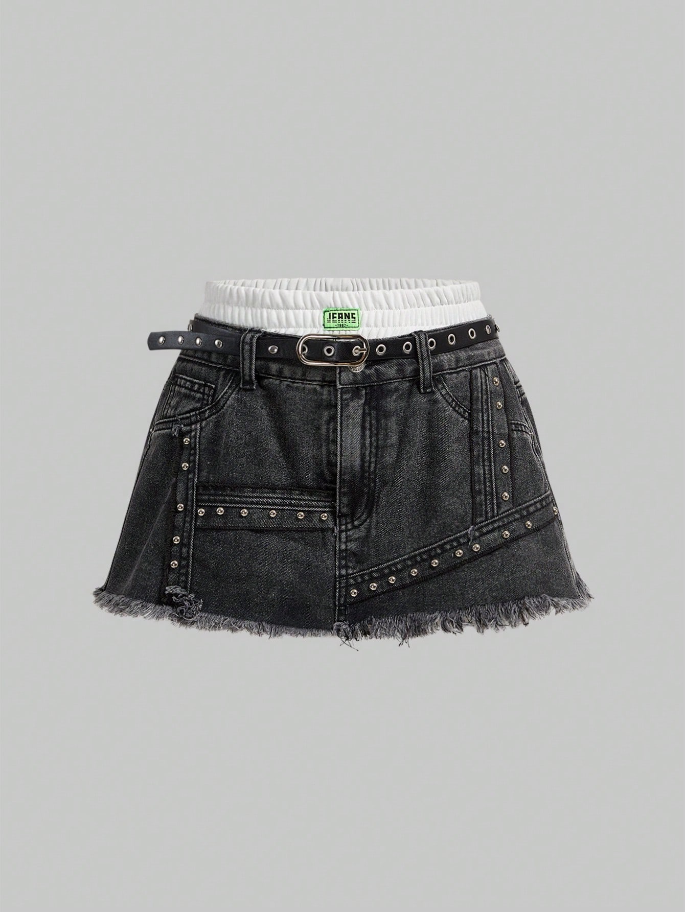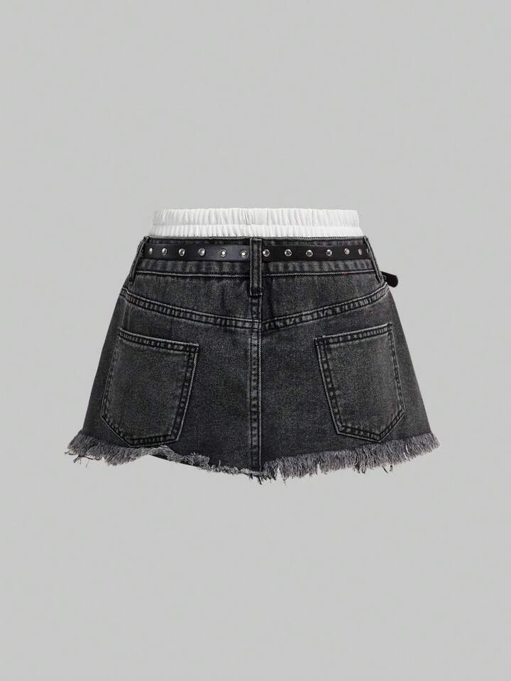 ROMWE Avant Low Waist Double Waistband Metal Decor Sexy Women Denim Mini Skirt