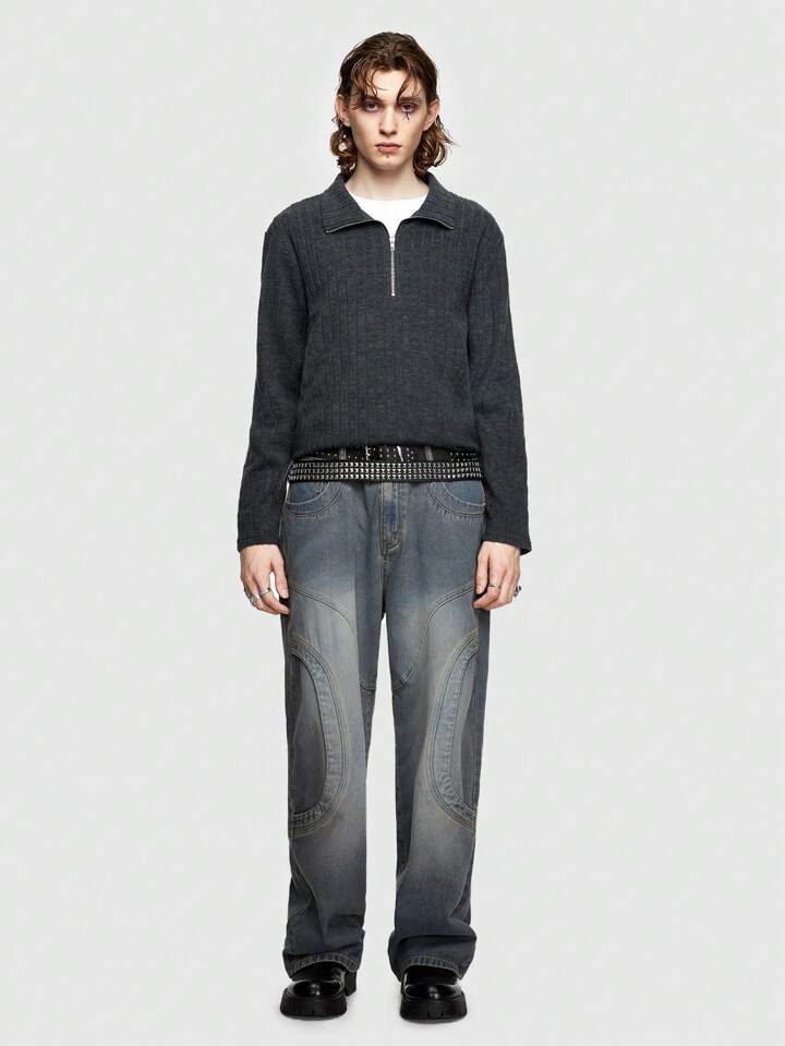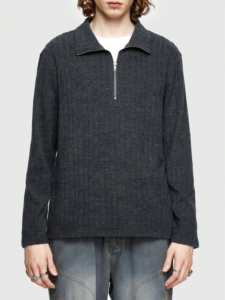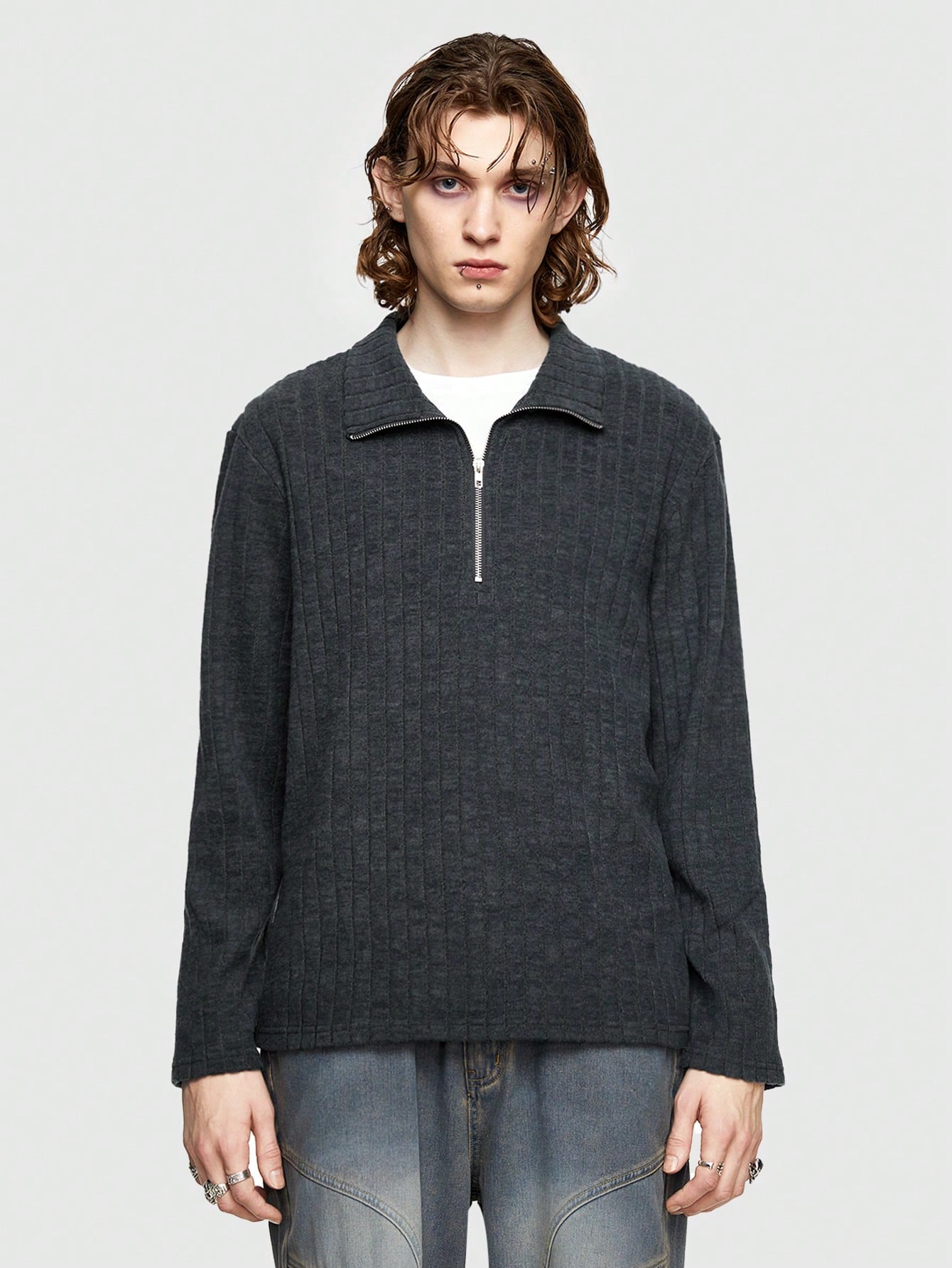 ROMWE Avant Men Solid Color Ribbed Knit T-Shirt