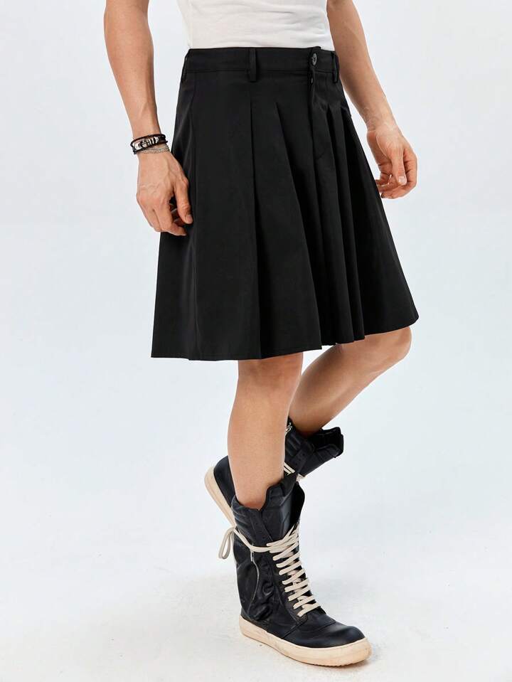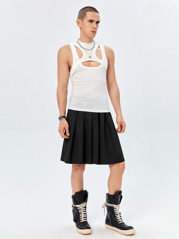 ROMWE Avant Men Solid Fold Pleated Detail Wide Leg Shorts, School