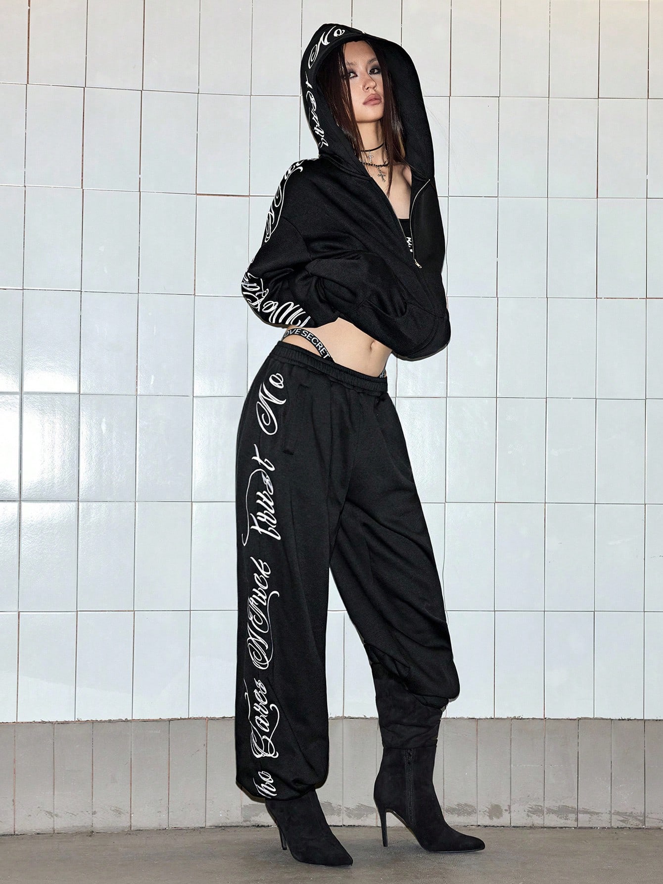 ROMWE Avant Oversized Graphic Embroidered Sweatshirt
