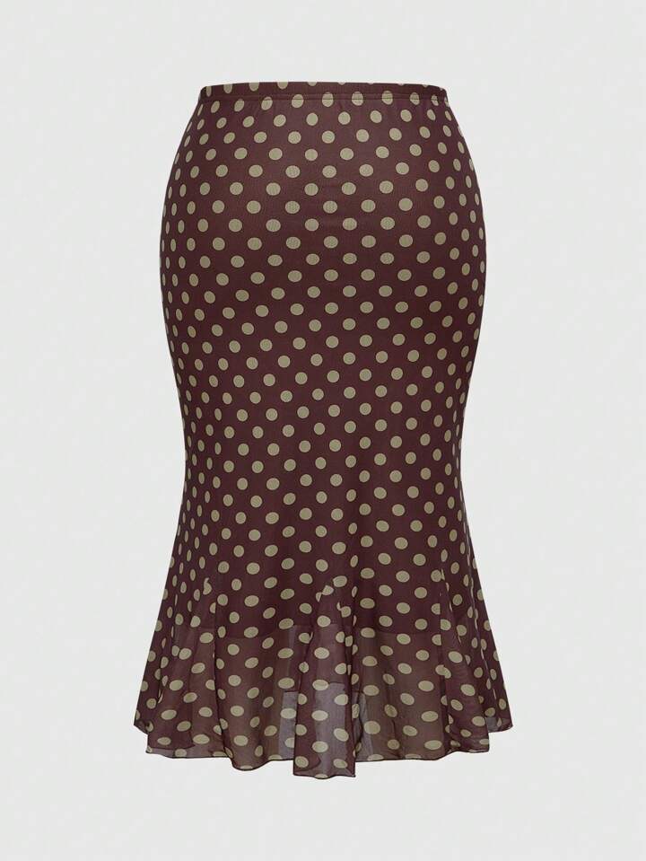 ROMWE Avant Plus Size Colorblock Polka Dot Fishtail Mermaid Skirt For Vacation
