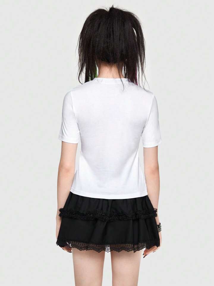 ROMWE Avant Scene Outfits Cartoon & Slogan Graphic Tee