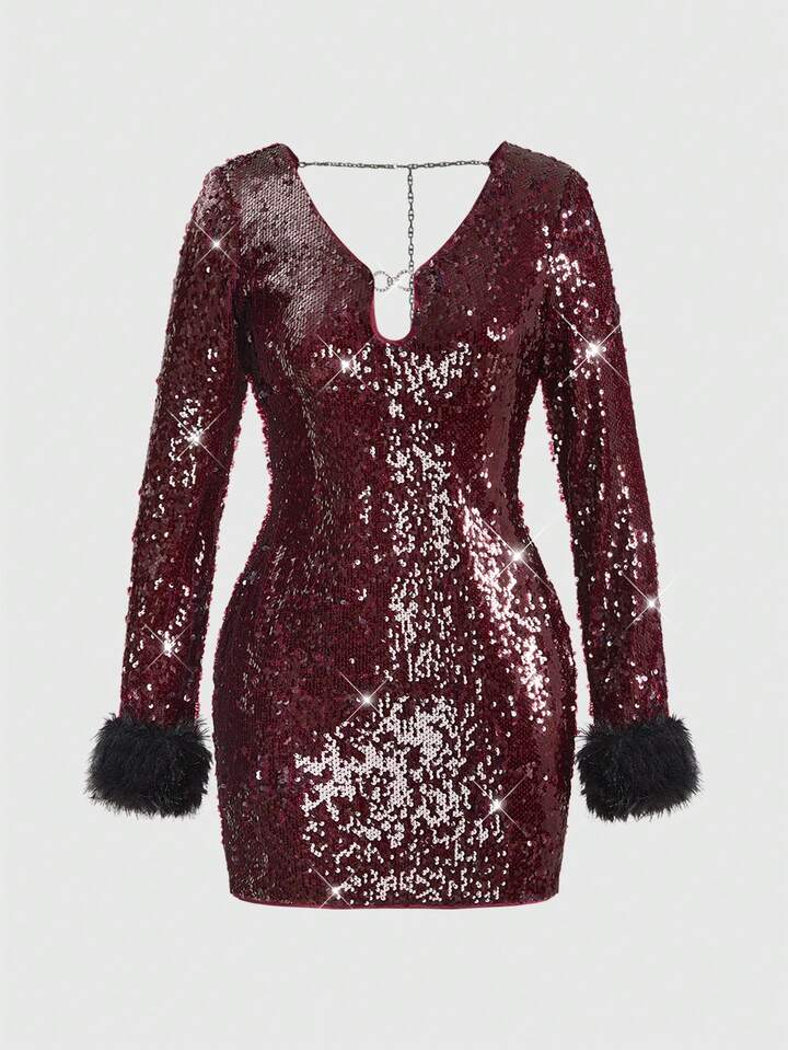 ROMWE Avant Sequin Long Sleeve Backless Tie Strap Party Mini Dress For Women