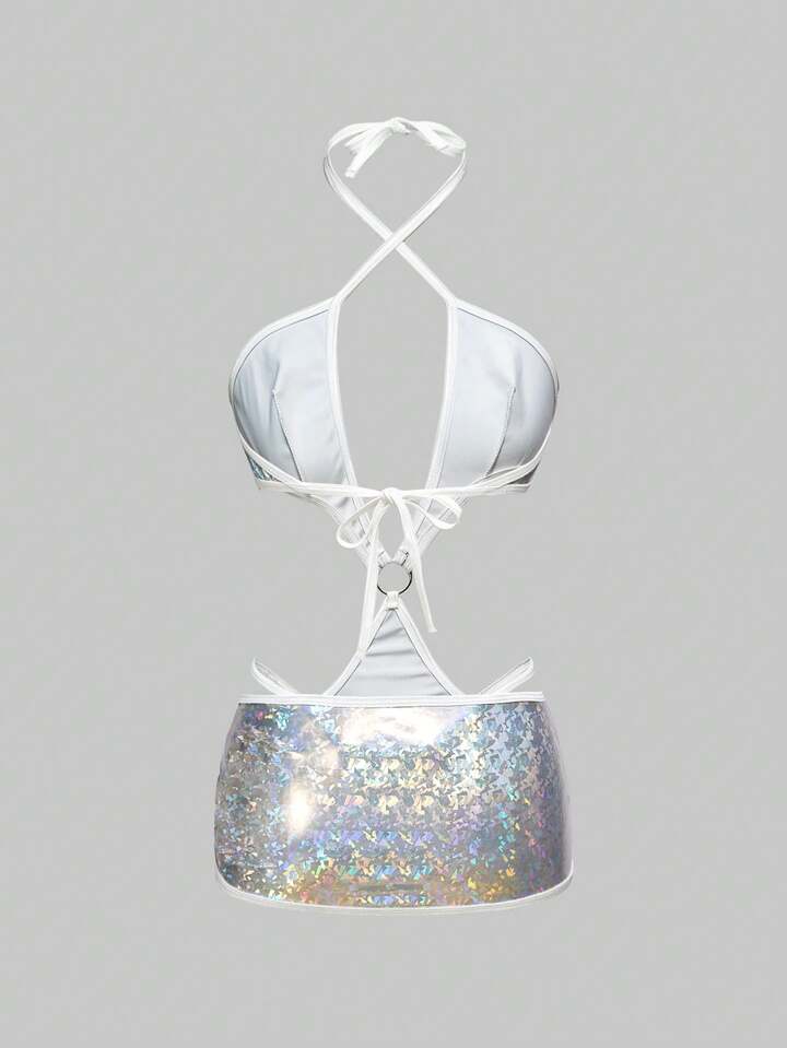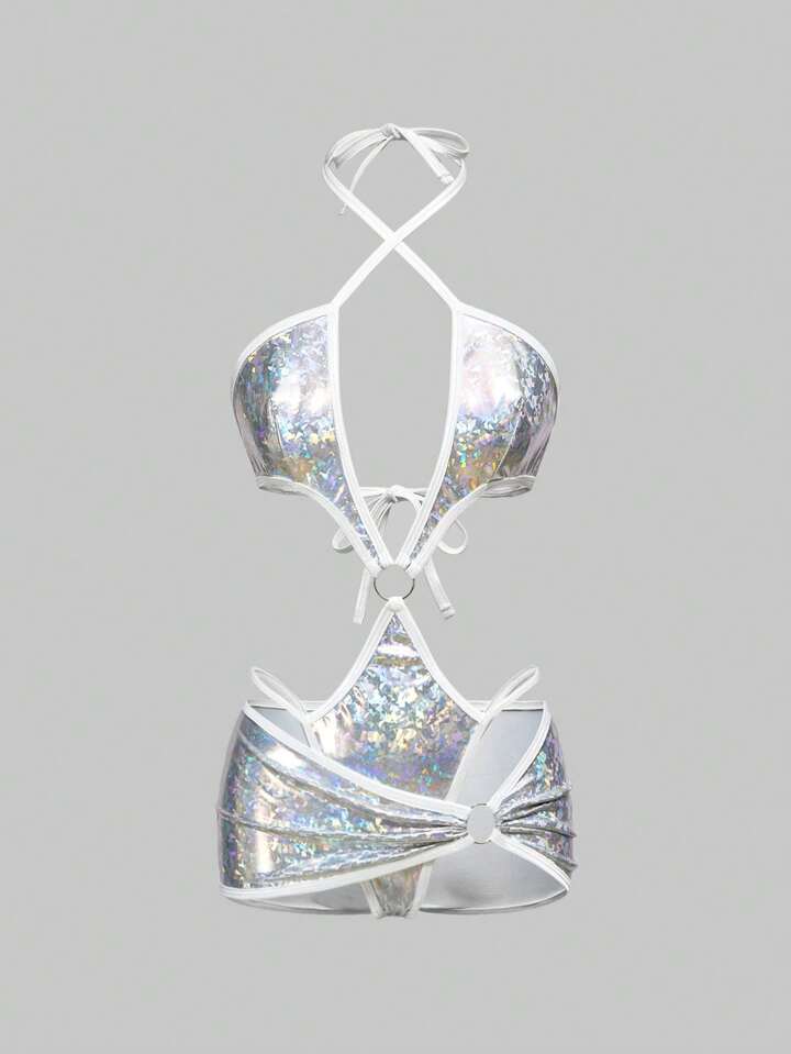 ROMWE Avant Sexy Fashionable Holo Coated Fabric Lingerie Set