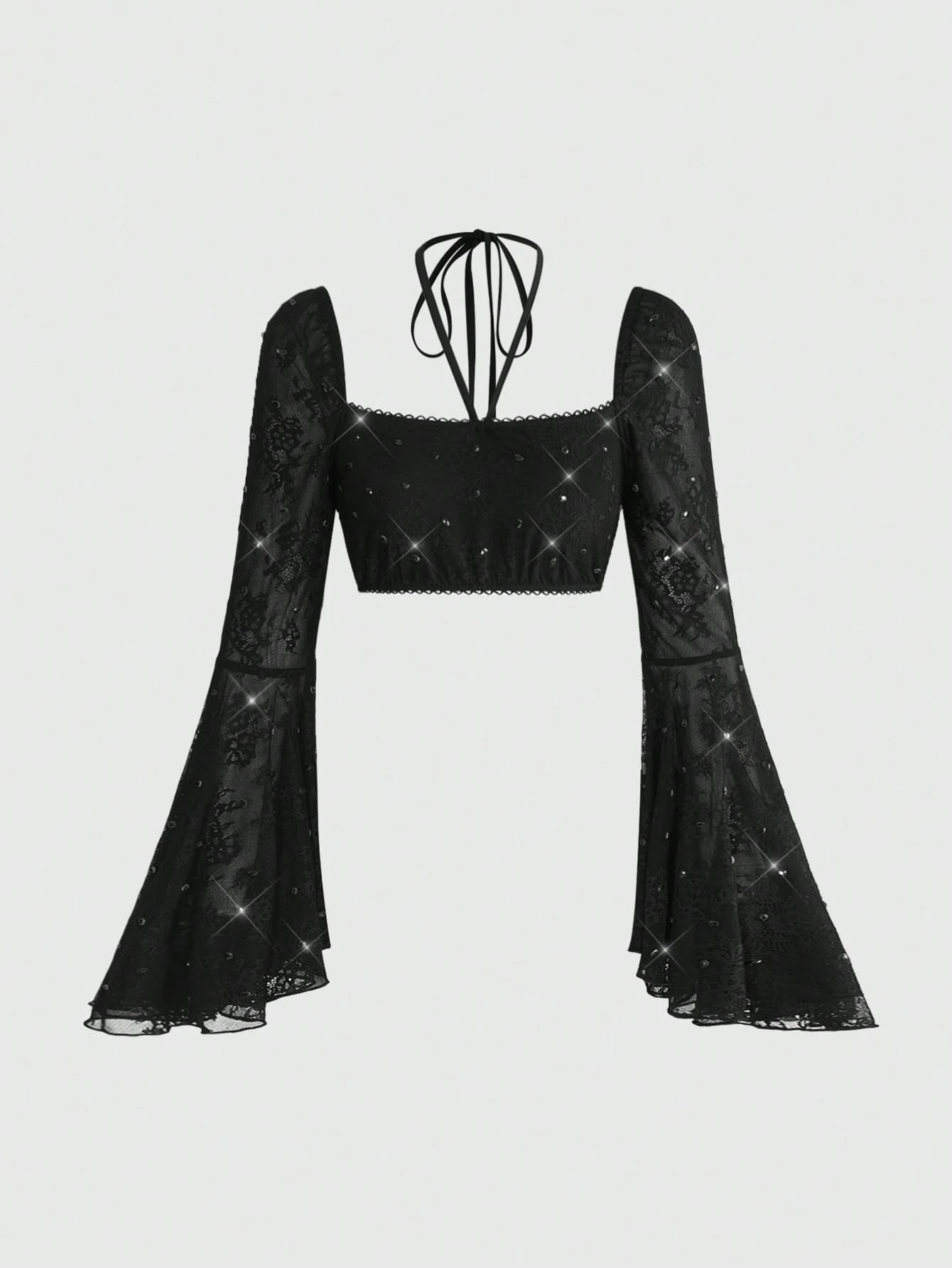 ROMWE Avant Sexy Lace Rhinestone Flare Sleeve Women Top