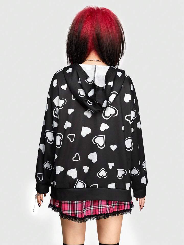ROMWE Avant Women'S Full Print Heart Shaped Zip-Up Hoodie